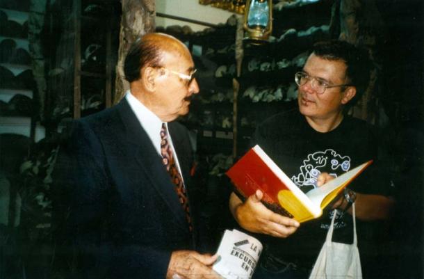 Primero intenté ver y fotografiar las misteriosas colecciones de artefactos del profesor Cabrera en el otoño de 1992. En ese año, tres amigos y yo viajamos por Sudamérica durante dos meses, desde Ecuador hasta la Isla de Pascua. Cuando llegamos a Ica y fuimos al museo privado del profesor Cabrera, nos llevamos una amarga decepción. El museo estaba cerrado y no había nadie a quien preguntar al respecto. Nuestro tañido de la campana quedó sin respuesta. Por fin, alguien nos dijo: el profesor Cabrera estaba de viaje, en Europa. Qué ironía: cuatro europeos habían emprendido el largo viaje a Ica en Perú, para visitar al profesor Cabrera, mientras el científico viajaba por Europa.